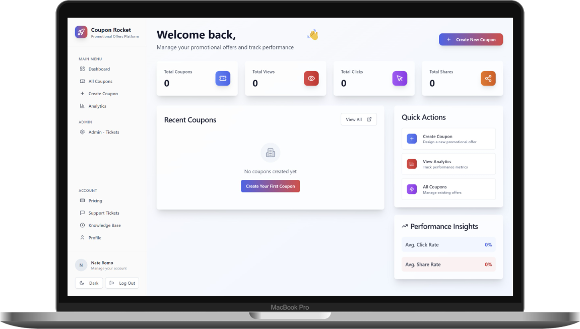 CouponRocket provides detailed analytics dashboards so you can see exactly how your deals are working—helping you maximize ROI on every promotion!